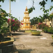 7:45 ドライバーとツアーガイドがホテルにお迎えに上がり、ミトーへ出発します。ホーチミン市からミトーまでは約 1 時間 30 分かかります。最初にヴィン チャン パゴダを観光します。これはティエンザン省最大の仏教寺院です。この寺院はヨーロッパとアジアの両方の建築様式で設計されています。旅を続け、観光客はベンチェ行きの乗り物に乗ります。ここでは、観光客は果樹園の自然を満喫し、おいしいフルーツを楽しみます。正午に昼食をとり、休憩します。